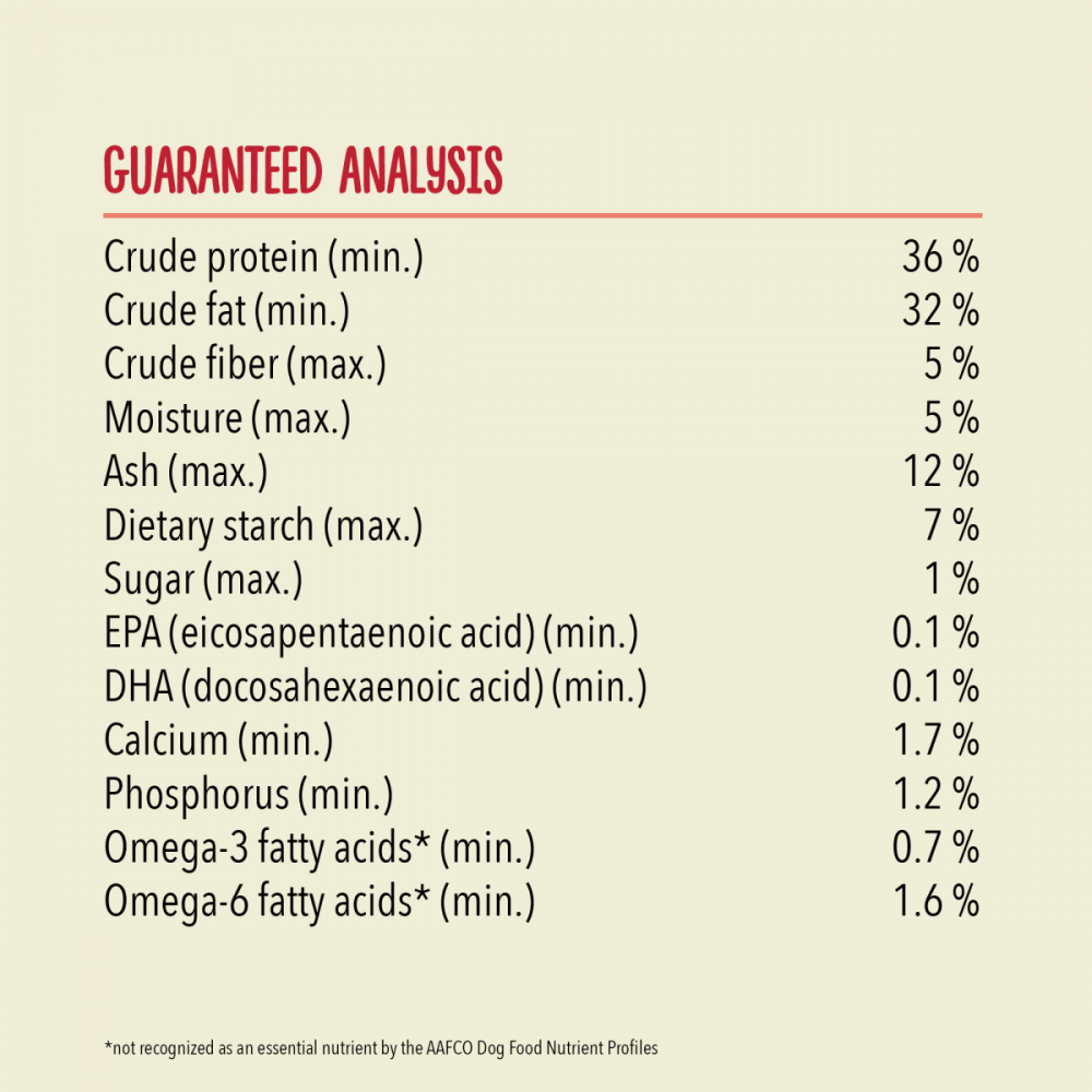 Give your dog's meals a boost of nutrition and delicious flavor with ACANA Farm-Raised Beef Recipe Freeze Dried Dog Food Meal and Topper. This grain free* freeze dried dog food satisfies your dog's natural cravings with ingredients like farm-raised beef, organs and bone. This dog food features protein-rich, bite-size breakable patties that are balanced with vegetables and fruit to provide all the benefits of raw nutrition with none of the mess. Delectable as a meal or as a topper on your dog’s favorite ACANA kibble, this freeze dried dog food topper is infused with a hearty bone broth for a taste dog's love. This dog food contains 90 percent** quality animal ingredients. Our included fresh ingredients use refrigeration as the sole method of preservation and our included raw ingredients are frozen at their peak freshness. Choose ACANA freeze dried dog food to give your companion the nutritional foundation they need to live a happy, healthy life. *Produced in a facility that also processes grains **Approximate and derived from the unprocessed state of the ingredients<h3>Why We Love It</h3><br><ul><li>One (1) 14 oz bag of ACANA High Protein Farm-Raised Beef Recipe Freeze Dried Dog Food Meal & Topper<li>Made with farm-raised beef, organs and bone, this grain free* freeze dried dog food offers a balanced recipe with 90 percent** quality animal ingredients<li>Bite-sized breakable patties infused with hearty bone broth and freeze-dried coated to lock in nutrients and a rich, natural flavor your dog will love</ul>From limited ingredient diets to recipes for all life stages, ACANA® recipes for dogs and cats are thoughtfully crafted from start to finish to ensure that your pet has the high quality, balanced nutrition needed to live a long and happy life.