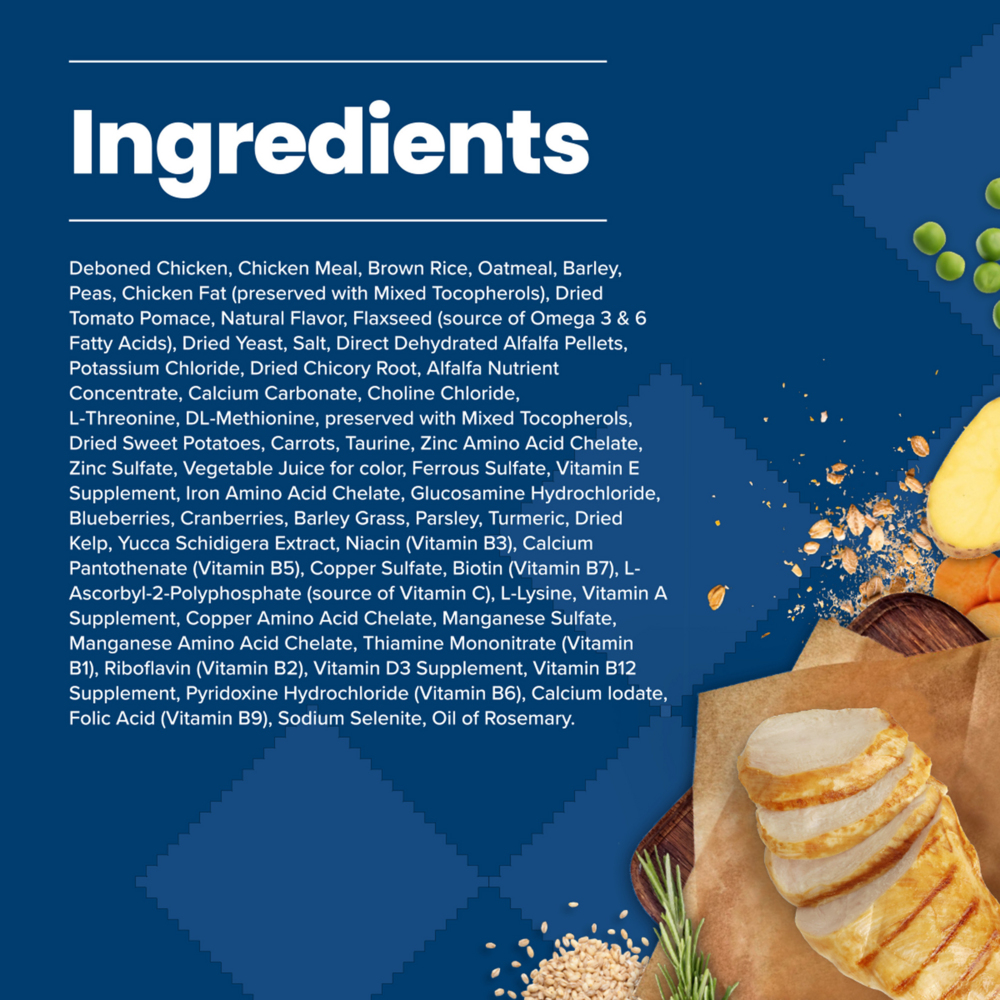 <p>Formulated for the health and well-being of dogs, BLUE Life Protection Formula Chicken & Brown Rice Recipe is made with the finest natural ingredients enhanced with vitamins, minerals and other nutrients. Starting with delicious, high-quality deboned chicken, it features antioxidant-rich fruits and veggies and wholesome whole grains.</p><h3>Why We Love It</h3><ul><li>REAL MEAT FIRST: Blue Buffalo foods always feature real meat as the first ingredient. High-quality protein from real chicken helps your dog build and maintain healthy muscles. Plus they contain wholesome whole grains, garden veggies and fruit.</li><li>FOR ADULT DOGS: BLUE Life Protection Formula adult dog food contains essential proteins and carbohydrates to help meet the energy needs of adult dogs, and features omega 3 & 6 fatty acids to promote a shiny coat and healthy skin.</li><li>WITH LIFESOURCE BITS®: This formula contains BLUE’s exclusive LifeSource Bits – a precise blend of antioxidants, vitamins and minerals carefully selected by holistic veterinarians and animal nutritionists, to support immune system health, life stage requirements, and a healthy oxidative balance.</li><li>A NATURAL DOG FOOD: BLUE dry dog food is made with the finest natural ingredients enhanced with vitamins and minerals. BLUE contains NO chicken (or poultry) by-product meals, corn, wheat, soy, artificial flavors or preservatives.</li></ul><p><br></p><h3>About Blue Buffalo</h3><p>BLUE Buffalo's True Blue promise is the pillar of their business, straight to every customer; the finest natural ingredients, and no chicken/poultry by-product meals, corn, wheat, soy, artificial preservatives, colors or flavors. BLUE Buffalo is the only food made with unique Lifesource Bits; a precise blend of vitamins, minerals and antioxidants created by veterinarians and animal nutritionists. With recipes for all tastes and diets, including limited ingredient diets, high protein, grain-free, wholesome grains, and exotic proteins, BLUE Buffalo always starts with real meat, and ends with good health.</p>