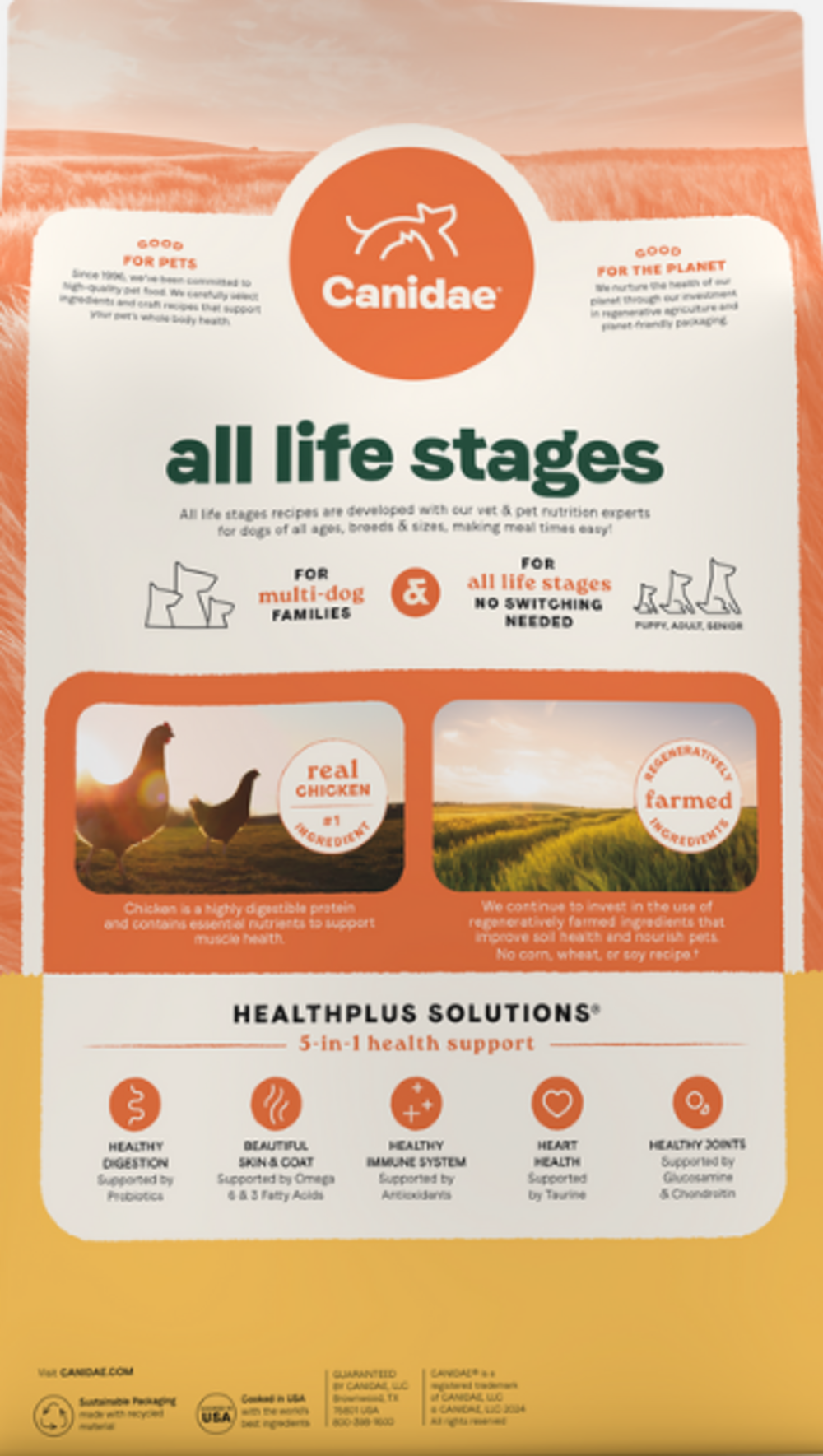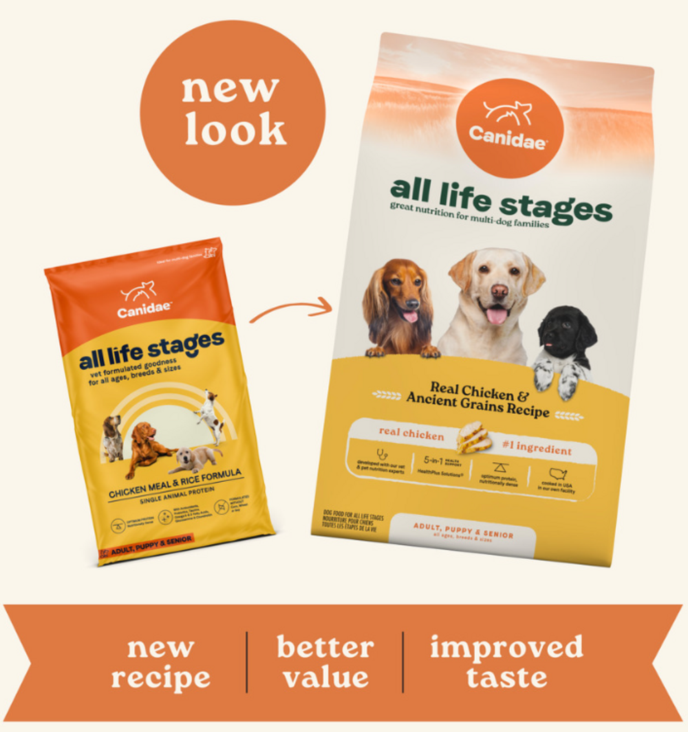 <p>With the needs of all breed and all ages in mind, Canidae All Life Stages Chicken Meal and Rice Formula Dry Dog Food is made with just the right amount of protein and nutrients dogs need. This recipe has added probiotics to support a health digestive system and is free of corn, wheat, and soy. Canidae All Life Stages Chicken Meal and Rice Formula Dry Dog Food is packed with nutrition AND flavor any pup is sure to love!<br><h3>Why We Love It</h3><ul><li>No corn, wheat, or soy!<li>Made to fit the needs of pups in all life stages!<li>Made in the USA</ul><p><br><h3>About Canidae</h3><p>CANIDAE® has been making great foods for our pets and yours since 1996. Working with farmers and suppliers for the best ingredients, establishing our Texas cookery, and taking the first steps at CANIDAE® Farms toward getting involved in the growing of some of the ingredients we use are all important parts of our commitment to pets and their people. CANIDAE® remains an independently owned brand pet lovers can trust to provide innovative and authentic foods for the beloved dogs and cats that enrich our lives in so many ways. Try one of our 5-star rated, top reviewed pet food brands today!