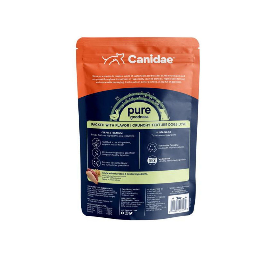 <p>These limited ingredient treats are the perfect reward for your pup with sensitivities and allergies! Canidae Grain Free PURE Heaven Biscuits with Duck and Chickpeas Dog Treats are made with high quality ingredients including Bison, butternut squash, and peas!<br><h3>Why We Love It</h3><ul><li>Grain free and great for training!<li>Limited ingredient, perfect for pup’s with allergies and sensitivities!<li>Made in the USA</ul><p><br><h3>About Canidae</h3><p>CANIDAE® has been making great foods for our pets and yours since 1996. Working with farmers and suppliers for the best ingredients, establishing our Texas cookery, and taking the first steps at CANIDAE® Farms toward getting involved in the growing of some of the ingredients we use are all important parts of our commitment to pets and their people. CANIDAE® remains an independently owned brand pet lovers can trust to provide innovative and authentic foods for the beloved dogs and cats that enrich our lives in so many ways. Try one of our 5-star rated, top reviewed pet food brands today!
