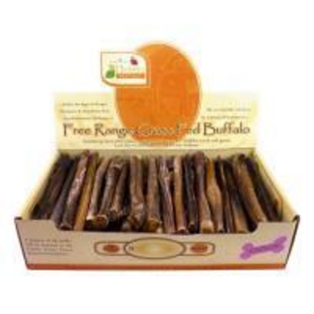 Canine Caviar Buffalo Stix are extra meaty to give your dogs a long-lasting, satisfying chew (helping to reduce tartar and maintain your dogs teeth and gums). Canine Caviar Buffalo Stix come from premium quality 100% free range grass fed buffalo.Buffalo graze on open grassland & natural grass, they are not fed manufactured feed. Buffalo have 70% to 90% less fat compared to beef, on average it has 50% less cholesterol making them very healthy!Product Features:* Free Range Special Grass Fed Buffalo* Hormone and Antibiotic FreeSingle sticks may occasionally come unwrapped but they're still the great Canine Caviar quality.
