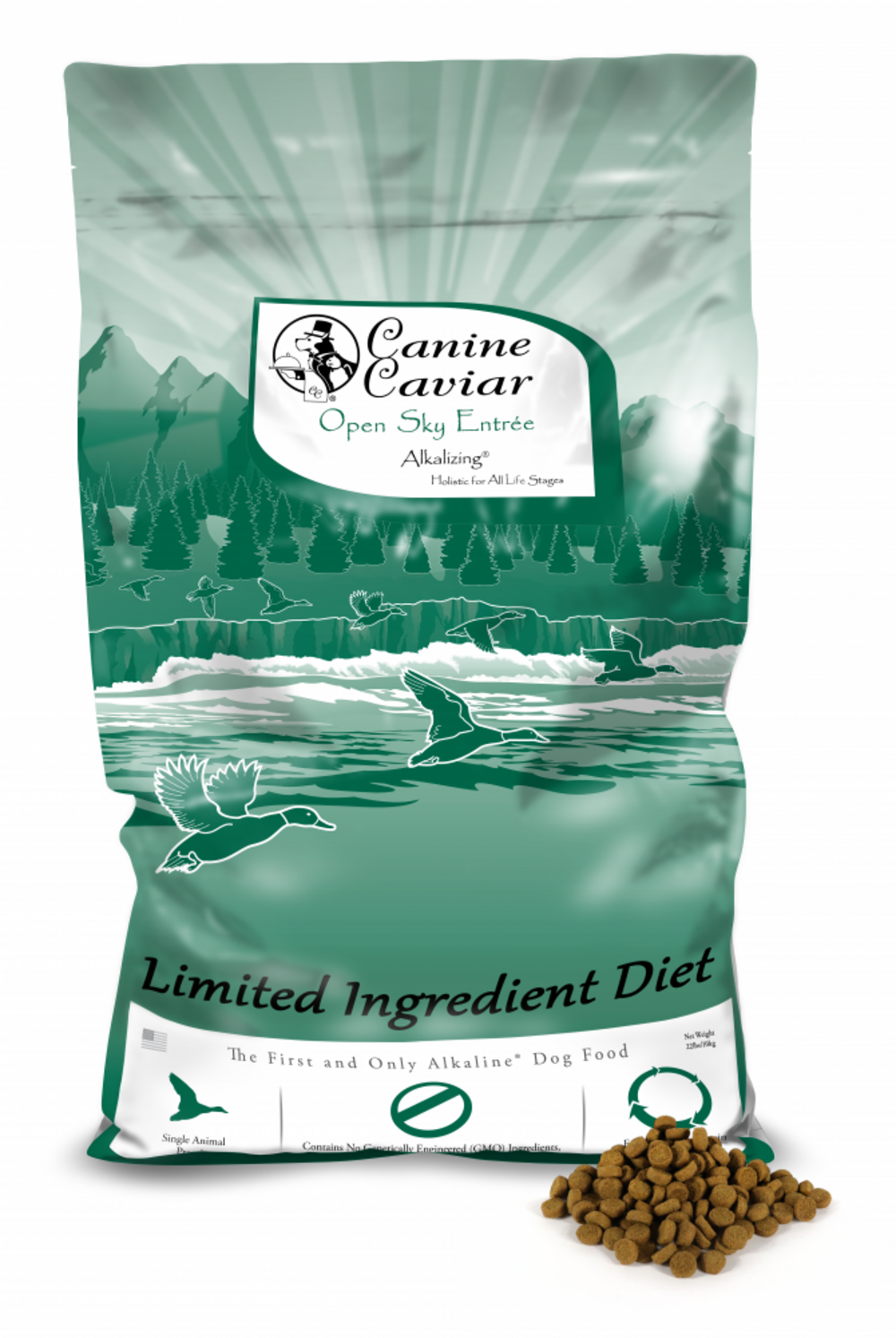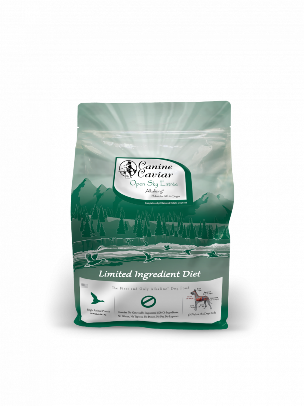 Canine Caviar’s Open Sky Limited Ingredient Alkaline Holistic Dog Food is a complete and balanced formula containing an excellent source of high-quality duck. Duck provides an excellent source of iron, selenium, and niacin intended for all breeds and all life stages. This formula is also an amazing option when considering a kibble to support the growth of large breed puppies. Canine Caviar’s Open Dog Food is a grain free formula and a nutritious food to that promotes a healthy lifestyle for your four-legged family member.-Single protein diets -Single carbohydrate diets -Made with fresh dehydrated meat that is hormone, pesticide and antibiotic free.-Does not contain chemical preservatives, by-products, GMO, glutens, BHA, BHT, ethoxyquin, corn, wheat or soy.