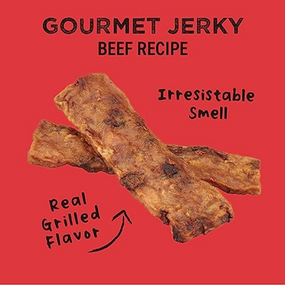 Cloud Star Wag More Bark Less Texas Style BBQ Beef Gourmet Beef Jerky treats are inspired by the irresistible taste and aroma of Texas BBQ cuisine. Made with a delicious culinary-style recipe in small batches, each treat contains ingredients like tomatoes, paprika, lemon juice and turmeric to give it that Texas BBQ flavor dogs crave. Natural, high quality Chicken is the #1 ingredient. Natural Beef is the first ingredient. Irresitible smell and real grilled flavor. Helps Support Hip & Joint Health.