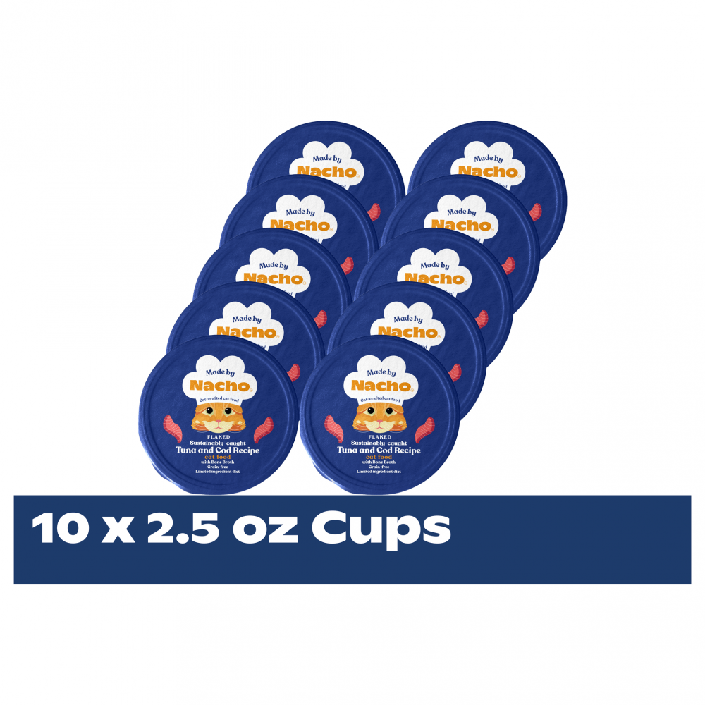 Made By Nacho Flaked Sustainably-Caught Tuna And Cod Recipe Cat Food With Bone Broth, Grain-Free Lid