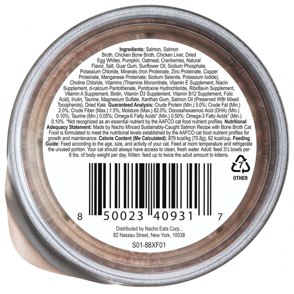 Made By Nacho Minced Sustainably-Caught Salmon Recipe Cat Food With Bone Broth And Prebiotics