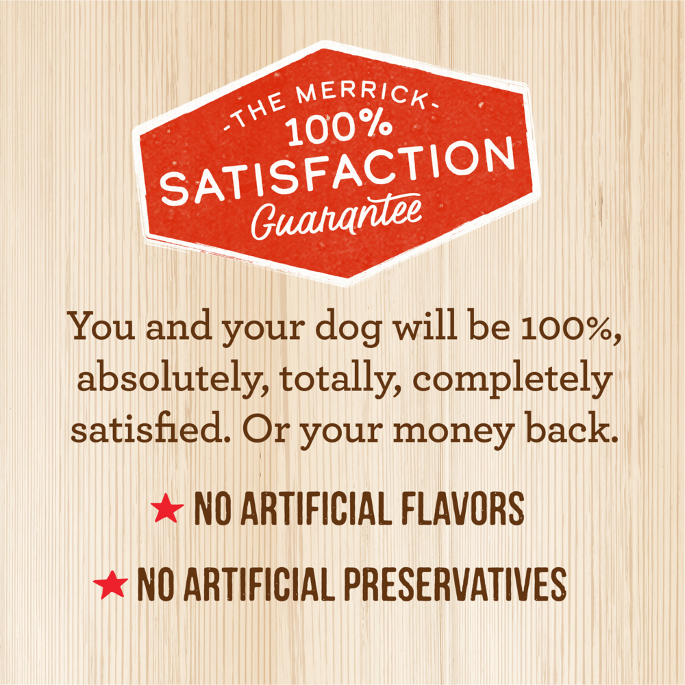 <p>Serve your dog a high quality meal with Merrick Dog Food, Chunky Grain Free Carver’s Delight Dinner in Gravy recipe. This premium grain free dog food recipe is a canned wet dog food crafted with real deboned chicken as the number one ingredient and contains high protein to support your dog’s lean muscle mass and healthy energy levels. Additionally, this wholesome, healthy dog food is crafted with a holistic blend of soft carrots and potatoes together in a savory gravy that adds flavor and moisture to your dog’s diet. Use this dog canned food as a topper for your dog’s dry kibble or as a delicious standalone meal your dog will love. Grain free, chunky, and natural, with added vitamins and minerals, this real meat dog food is crafted without artificial flavors or preservatives. Merrick dog wet food is proudly founded in Hereford, Texas, crafted in USA facilities.<br></p><h3>Why We Love It</h3><ul><li>Grain-free with no artificial colors, flavors, or preservatives</li><li>Made with chunks of real, farm fresh meat</li><li style="list-style: none; display: inline"><h3>About Merrick</h3><p>Merrick isn't your typical pet food company, and Merrick doesn't just make pet food. Merrick makes the best food ever for the best pet ever. Yours. The five star promise from Merrick is what's guaranteed to each and every dog and cat, along with their owners. Local growers, real whole foods, their own kitchen, balanced nutrition, and health you can see. Merrick creates real, wholesome recipes using USDA-inspected deboned meat and fresh produce for industry leading levels of protein, glucosamine and chondroitin. All of Merrick's foods are handcrafted in Hereford, Texas from USA farmers they know and trust. With no additives, sweeteners, colors or preservatives, real whole foods including high quality meats and fresh caught fish are the core of every Merrick dog and cat food. Merrick has been cooking their own foods in their own Texas kitchen for over 25 years. They stand behind their products with a 100% guarantee, promising that your dog or cat will be happier and healthier. You are what you eat, so why not feed your best friend the very best?</p></li></ul>