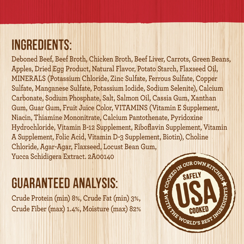 <p>Merrick Grain Free Wet Dog Food Cowboy Cookout's first ingredient is always real USDA-inspected deboned beef. This real beef dog food recipe also contains carrots, green beans and granny smith apples, to lend wholesome goodness and variety to your dog's menu. A savory dog food gravy made with beef broth adds even more flavor and moisture to daily meals. To meet your dietary preferences, this grain free wet dog food with vegetables contains no artificial colors, flavors, preservatives or by-products. Use this Merrick moist dog food recipe as a topper for your dog's dry kibble, or serve it as a nutritious standalone meal. A convenient pull-tab can makes preparing your dog's meal quick and easy. Like all Merrick recipes, Cowboy Cookout was crafted in our Hereford, TX kitchen and cooked in the USA.<br><h3>Why We Love It</h3><ul><li>Made with real deboned beef accompanied by fresh produce like carrots and sweet potatoes!<li>Grain-free with no artificial colors, flavors or preservatives!</ul><h3>About Merrick</h3><p>Merrick isn't your typical pet food company, and Merrick doesn't just make pet food. Merrick makes the best food ever for the best pet ever. Yours. The five star promise from Merrick is what's guaranteed to each and every dog and cat, along with their owners. Local growers, real whole foods, their own kitchen, balanced nutrition, and health you can see. Merrick creates real, wholesome recipes using USDA-inspected deboned meat and fresh produce for industry leading levels of protein, glucosamine and chondroitin. All of Merrick's foods are handcrafted in Hereford, Texas from USA farmers they know and trust. With no additives, sweeteners, colors or preservatives, real whole foods including high quality meats and fresh caught fish are the core of every Merrick dog and cat food. Merrick has been cooking their own foods in their own Texas kitchen for over 25 years. They stand behind their products with a 100% guarantee, promising that your dog or cat will be happier and healthier. You are what you eat, so why not feed your best friend the very best?