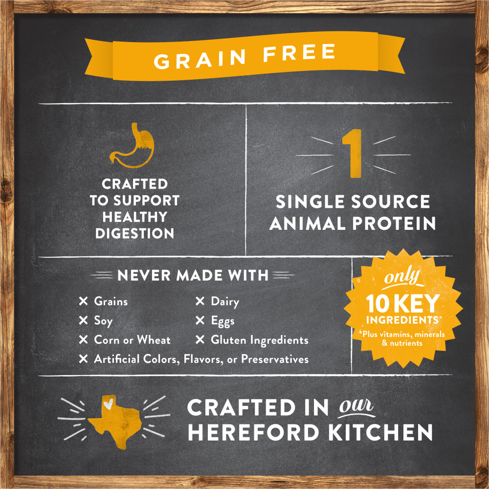 Merrick Limited Ingredient Diet Grain Free Dry Dog Food Real Salmon & Sweet Potato Recipe is specially formulated with just 10 key ingredients for adult dogs with food sensitivities or allergies. Real deboned salmon is always the first ingredient for a single-sourced protein recipe that provides important amino acids, vitamins and minerals for the balanced nutrition dogs need. This gluten free dog food also has no grain or soy ingredients. It is also made without corn, wheat, dairy, eggs or artificial colors, preservatives or flavors. Grain free, this salmon dog food recipe is crafted to support healthy digestion for your dog. Like all Merrick recipes, this limited ingredient dry dog food was crafted in our Hereford, TX kitchen and cooked in the USA.