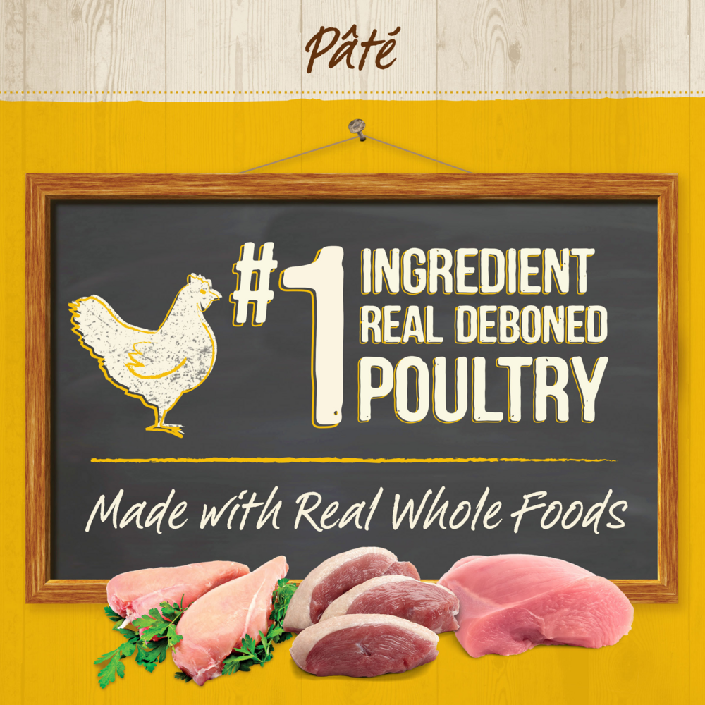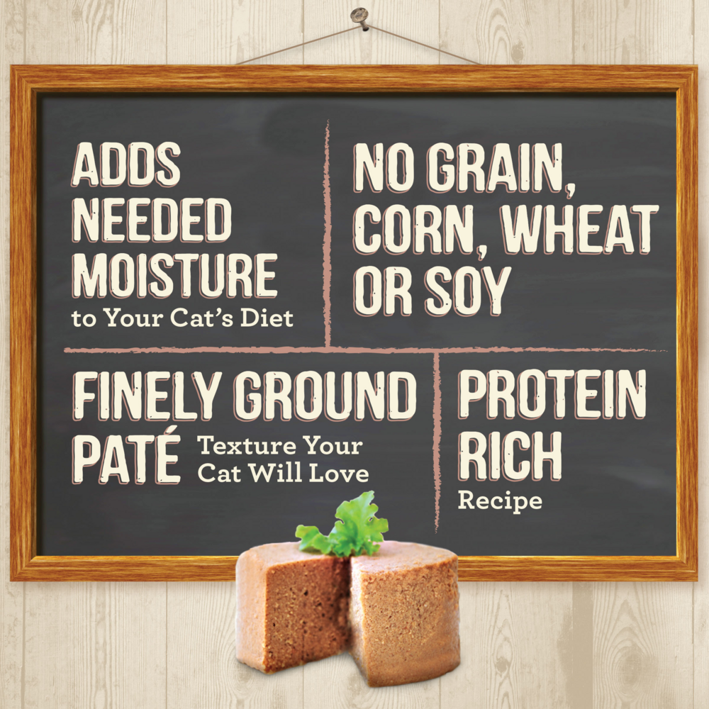 Crafted for cats who appreciate the finer things, this Merrick Purrfect Bistro Poultry Variety Pack features 12 tasty 5.5 oz cans in three popular recipes: Duck, Chicken and Turkey. This highly digestible cat food pack features deboned poultry as the first ingredient for quality protein and great taste that even the most discerning of cat food connoisseurs will love. High quality, natural ingredients are finely ground to create a smooth pate cat food with the meaty taste cats crave. Purrfect Bistro grain free canned cat food recipes are high in essential fatty acids like Omega-3 and 6 for healthy skin and super soft fur. Packed with a variety of flavors your cat will love, this high protein cat food also features antioxidants to help support a healthy immune system. Merrick adult cat food recipes never use artificial colors, flavors or preservatives, and these sumptuous wet cat food pate recipes are crafted without wheat, corn, or soy for truly delicious and filling meals. Whether your cat prefers our chicken, duck or turkey cat food, Purrfect Bistro cat food pates are great for indoor and outdoor cats and come in a variety of recipes your cat will love. All Merrick recipes are crafted in our Hereford, TX kitchen and cooked in the USA, in facilities that uphold strict FDA guidelines. Merrick Purrfect Bistro Poultry Variety Pack Grain Free Wet Cat Food Pate Recipes. Real deboned poultry is always the first ingredient in this high protein cat food. Grain free cat food high in essential fatty acids like Omega-3 and 6 for healthy skin and super soft fur.