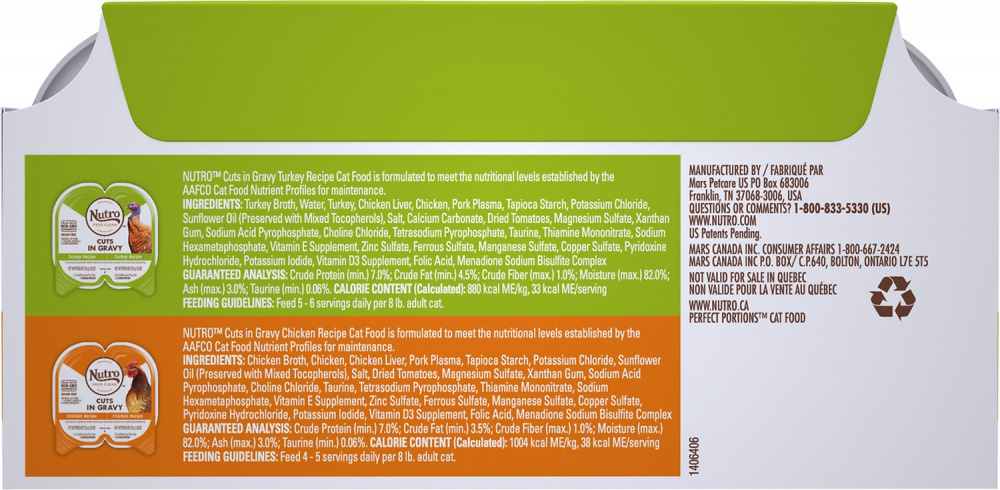 Nutro Perfect Portions Grain Free Chicken and Turkey Cuts in Gravy Wet Cat Food Tray Variety Pack