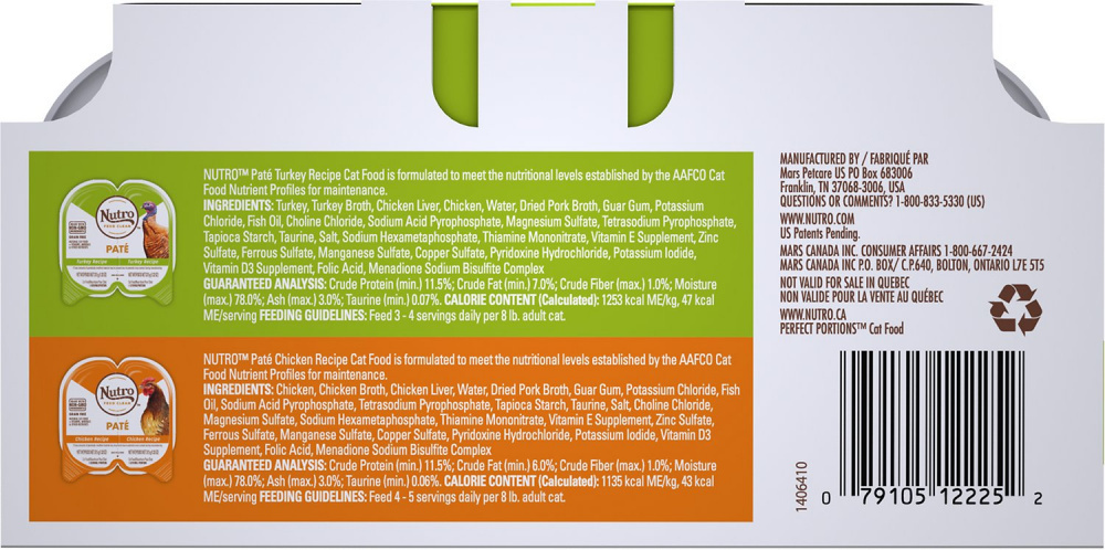 Nutro Perfect Portions Grain Free Turkey Pate and Chicken Pate Wet Cat Food Tray Variety Pack