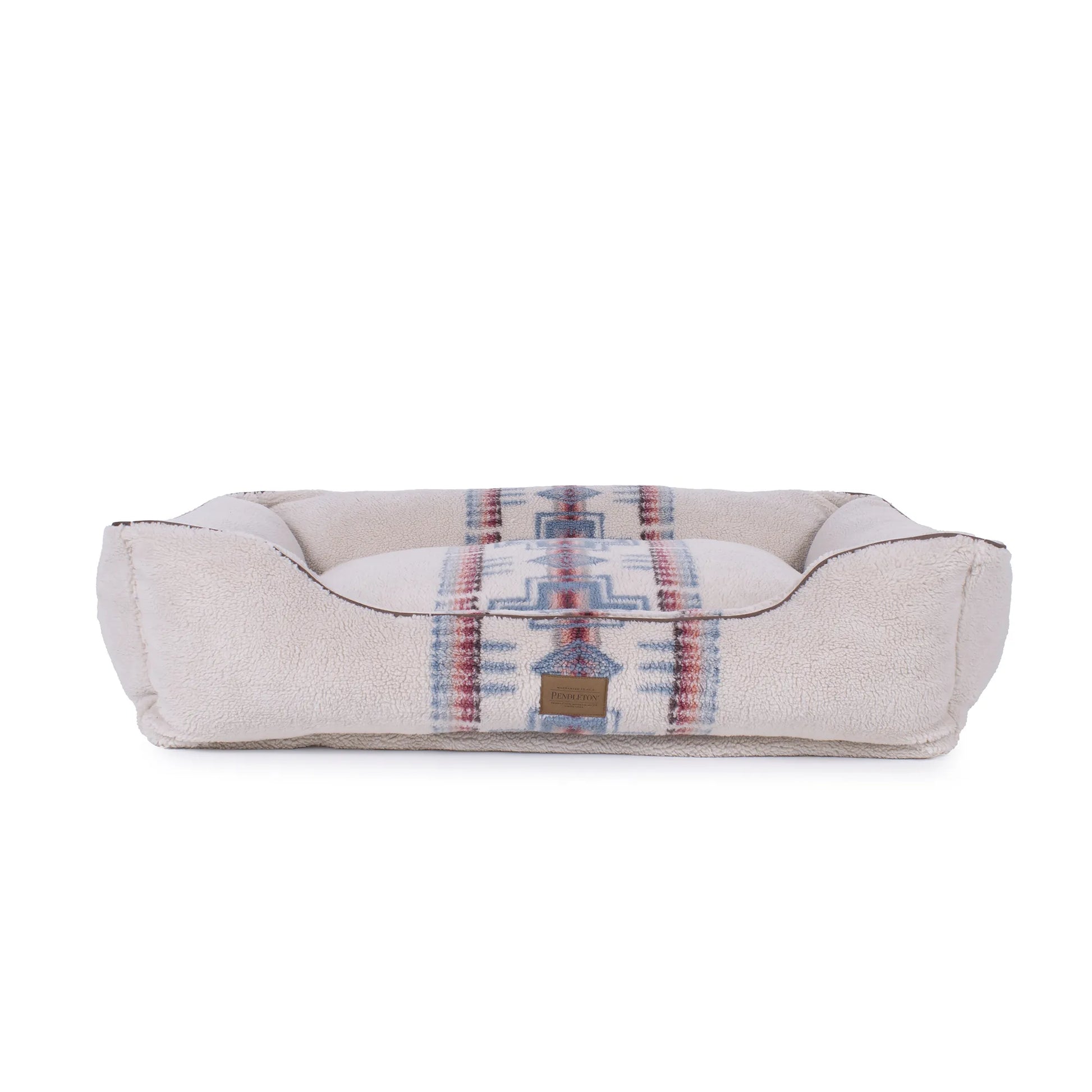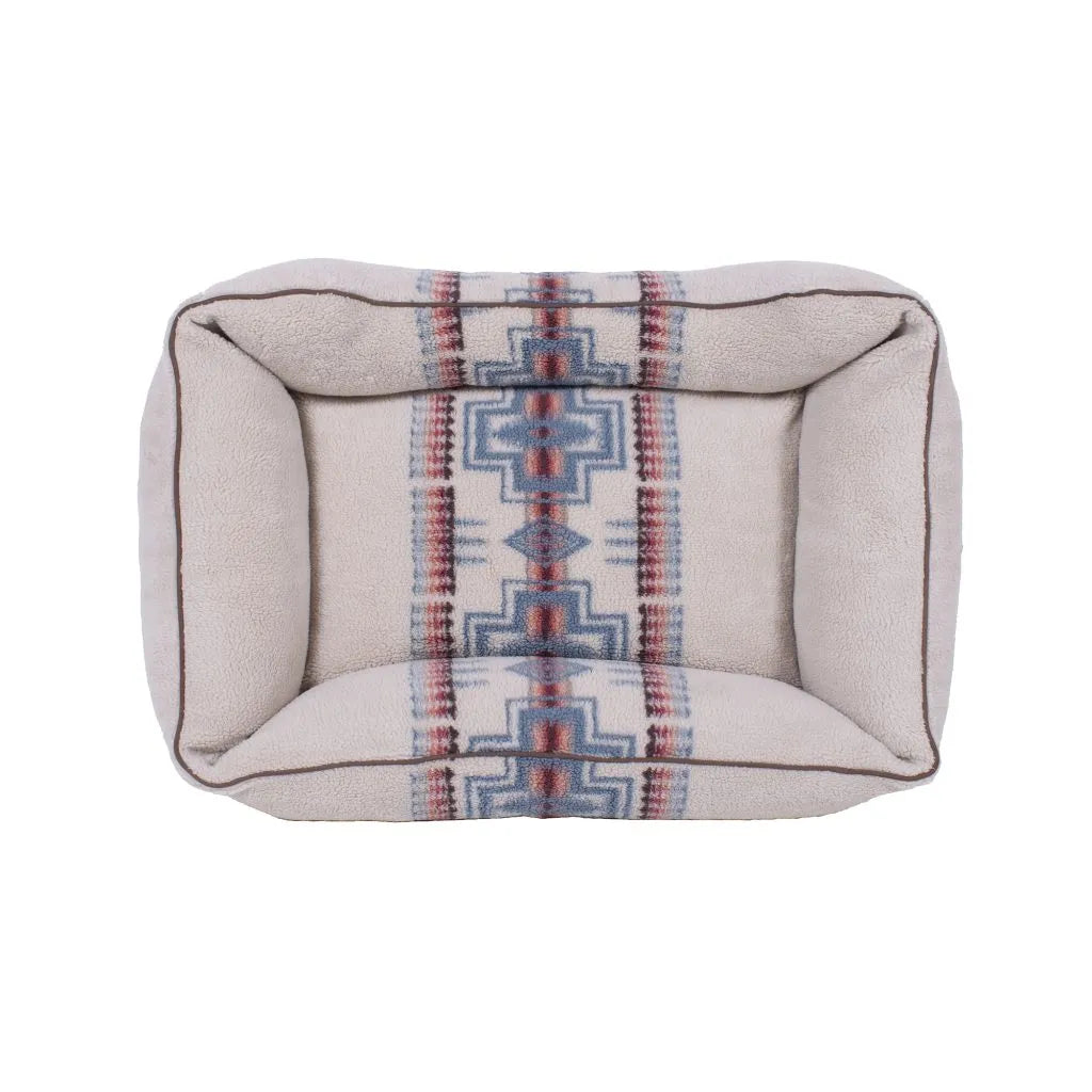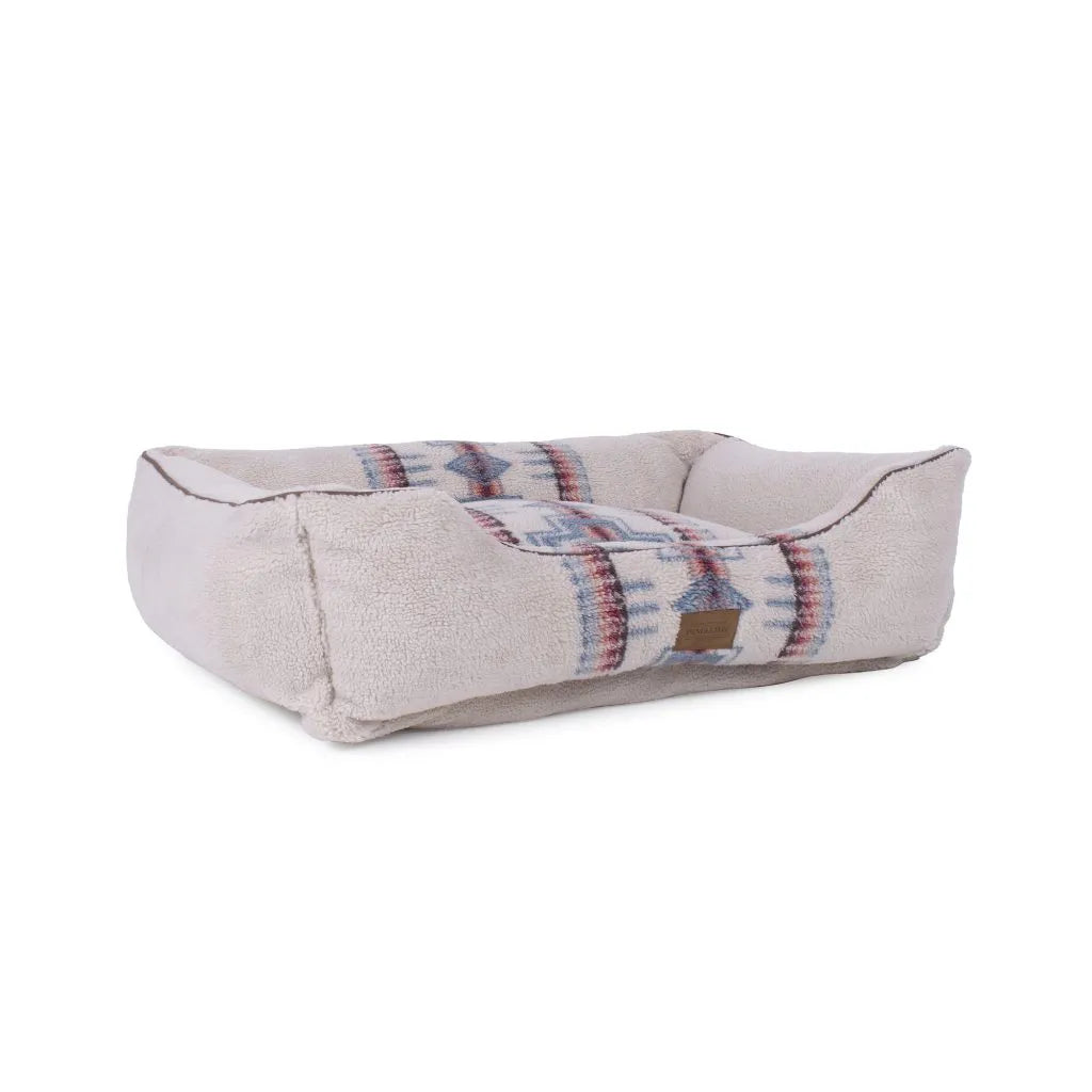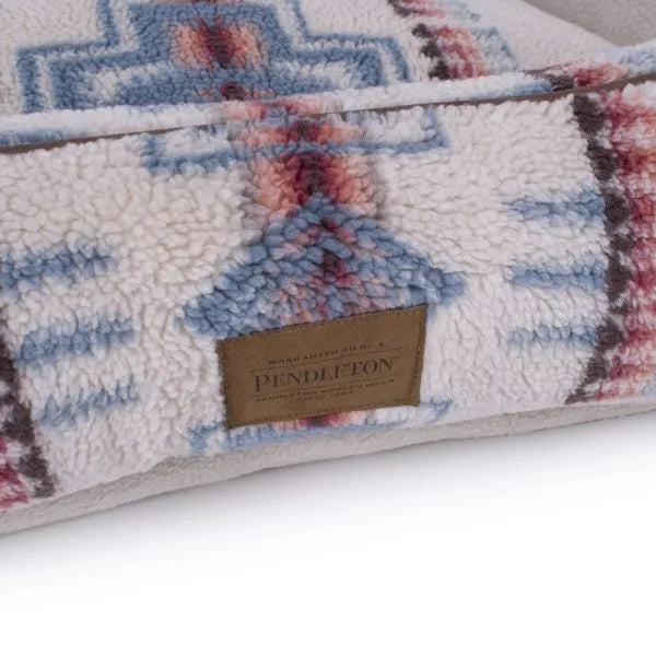 Based on one of the bestselling Pendleton blanket designs, the Pendleton Pet Harding Kuddler will also be a fan, and pet, favorite. It showcases the Harding cross icon in rose and blue tones on a natural berber background. It features a soft polyester cushions filled with recycled high-loft memory fiber polyester fill. The removable cushion cover is machine washable. Also available in a natural color way.