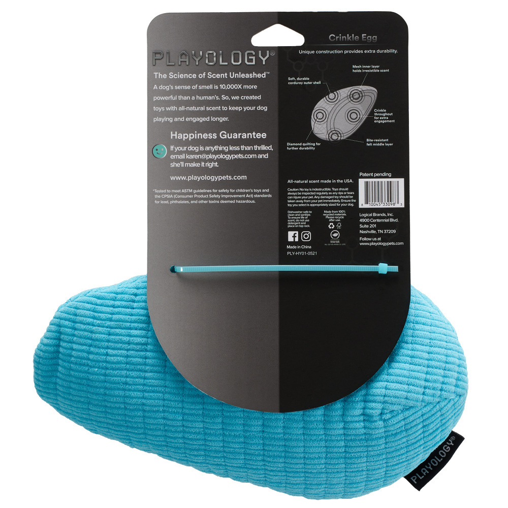 <p>The Science of Scent Unleashed! Playology designs scented toys made from dog-safe materials that keep dogs engaged longer 7X as long as an unscented toy. Our Plush Crinkle Egg features an enticing scent, engaging crinkle, and reinforced durability to make play sessions exciting and long-lasting. It is suitable for dogs of all ages and is great for interactive play and fetch. Available in two sizes and two mouthwatering scents allowing you to find what suits your dog's taste.<br><h3>Why We Love It</h3><ul><li>MADE WITH ENCAPSISCENT TECHNOLOGY - Dogs crave SCENT. We embed the all-natural scents that dogs love directly into the material of each and every toy. As your dog chews, scent particles are released to keep them happy and playing.<li>MADE FROM CHILD SAFE MATERIALS - We love our dogs like children. All Playology toys are tested to meet U.S. government human child safety standards for lead, phthalates, BPA and other toxins deemed hazardous.<li>EASY TO CLEAN - Dirt and sand trapped on the surface of a toy can grind down your pup's teeth. All Playology toys are easy to clean. Plus, our Encapsiscent Technology means you won't wash away the all-natural scent they love.</ul><p><br><h3>About Playology</h3><p>Founded by Dog Lovers: When we developed our line, we looked at the science behind what made dogs enjoy their toys. We also asked how human children were protected and used those same safety standards. Everyone at Playology remains committed to designing and developing the best, safest and healthiest toys we possibly can.