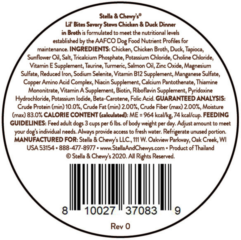 Stella & Chewy's Lil Bites Savory Stews for Small Breeds Chicken & Duck Dinner in Broth