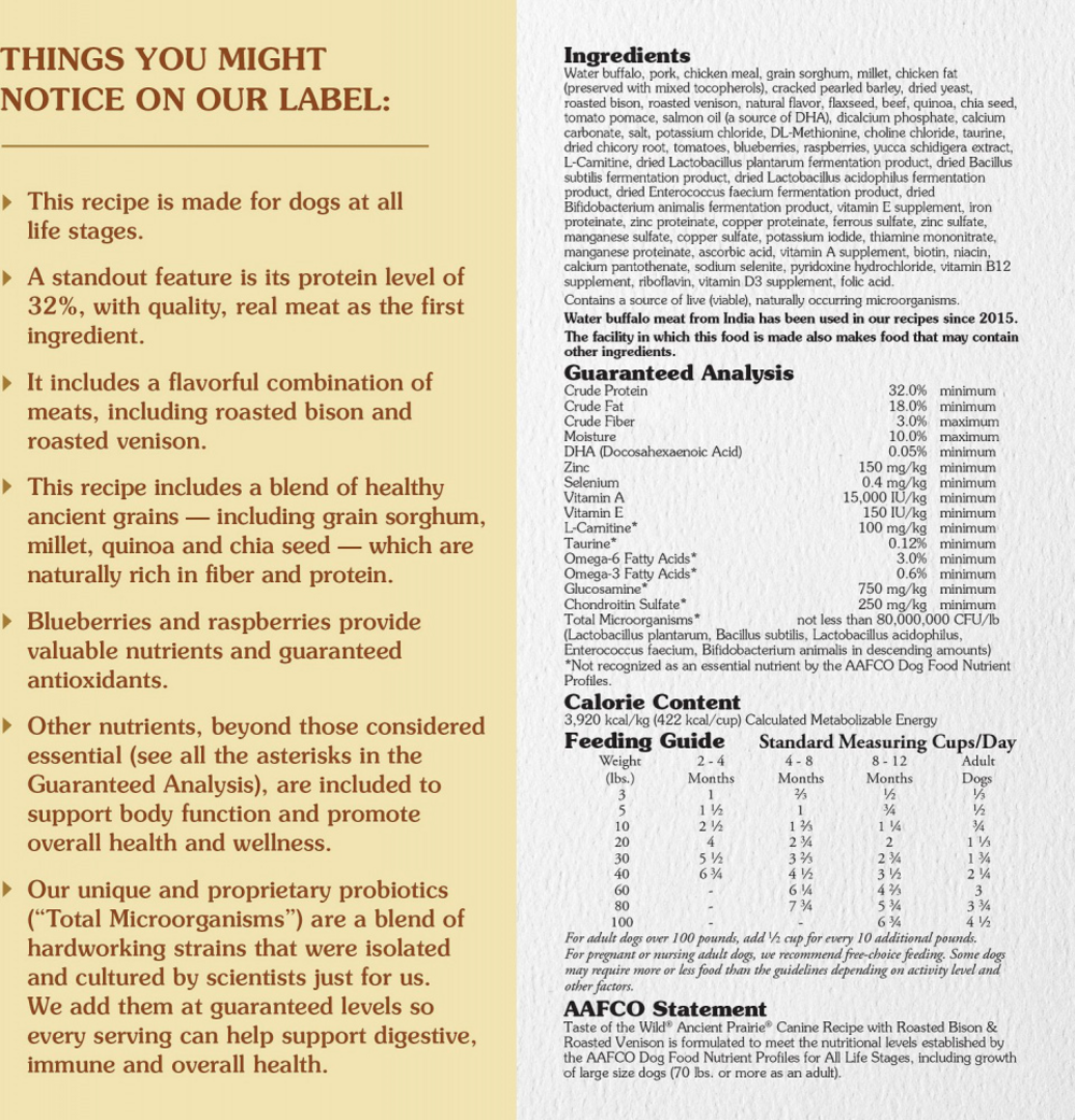 The unique combination of pasture-raised bison, pasture-raised venison and ancient grains means this recipe is flavorful and rich in protein. It also features antioxidants for immune support and more.