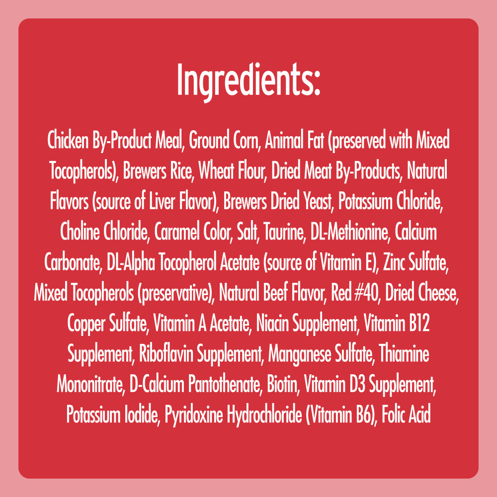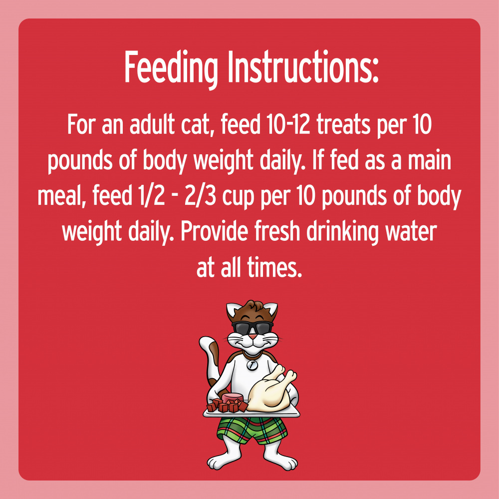 Reward your cat with scrumptious playtime cat snacks that are 100% nutritionally complete for adult cat maintenance and that help to control tartar. Featuring a tempting mix of cookout-inspired flavors, such as chicken, beef and liver, TEMPTATIONS MixUps variety cat treats are a great-tasting playtime reward. They're the perfect size treats for cat toys, so try placing a few inside a treat dispenser toy and watch your cat chase and swat away. Plus, at only 2 low calories per treat, your feline friend can enjoy the crunchy outside and soft center anytime. America's #1 cat treat* is the perfect way to show your feline friend how much you care. (* Based on 2020 Nielsen sales data)
