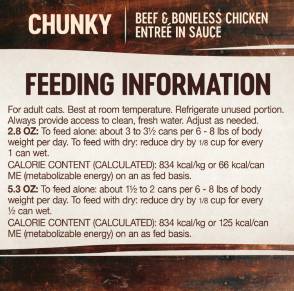 <p>Wellness Signature Selects Grain Free Natural Beef and White Meat Chicken Entrée in Sauce Wet Canned Cat Food is perfect for cats who need some skin and coat care! Along with the satisfying beef chunks and deboned chicken, this recipe has three different sources of omegas for skin moisturization and optimum coat growth! Tuna, sunflower oil, and egg are all in this delicious recipe that help prevent and treat dandruff, keep skin hydrated, and make the coat shiny and healthy. Having so much omega also helps with fighting infections. Even if your cat does not have skin issues, this recipe will help maintain your cat’s beautiful coat and skin!<br><h3>Why We Love It:</h3><ul><li>Grain-free de-boned chicken and wholesome beef recipe that has three different sources of Omega for skin and coat health<li>No by-products, fillers, soy, corn, artificial preservatives, colors or flavors<li>Easy to open can for your convenience</ul><p><br><h3>About Wellness</h3><p>What our pets eat feeds the soul and protects the body. That's why Wellness takes carefully selected, authentic ingredients from trusted sources to create an ideal nutritional balance with lean, healthy proteins, probiotics, omega fatty acids, fresh fruits and veggie antioxidants, and vitamins and nutrients. With over 200 varieties of foods with high quality proteins like salmon, beef, rabbit, and duck, in grain-free limited ingredient, dry and wet formulas, Wellness can offer every dog and cat something special and perfect just for them. Using only whole foods, with no wheat, corn, soy, preservatives, artificial colors and flavors, or empty calories, Wellness is the face of a new generation in pet food.